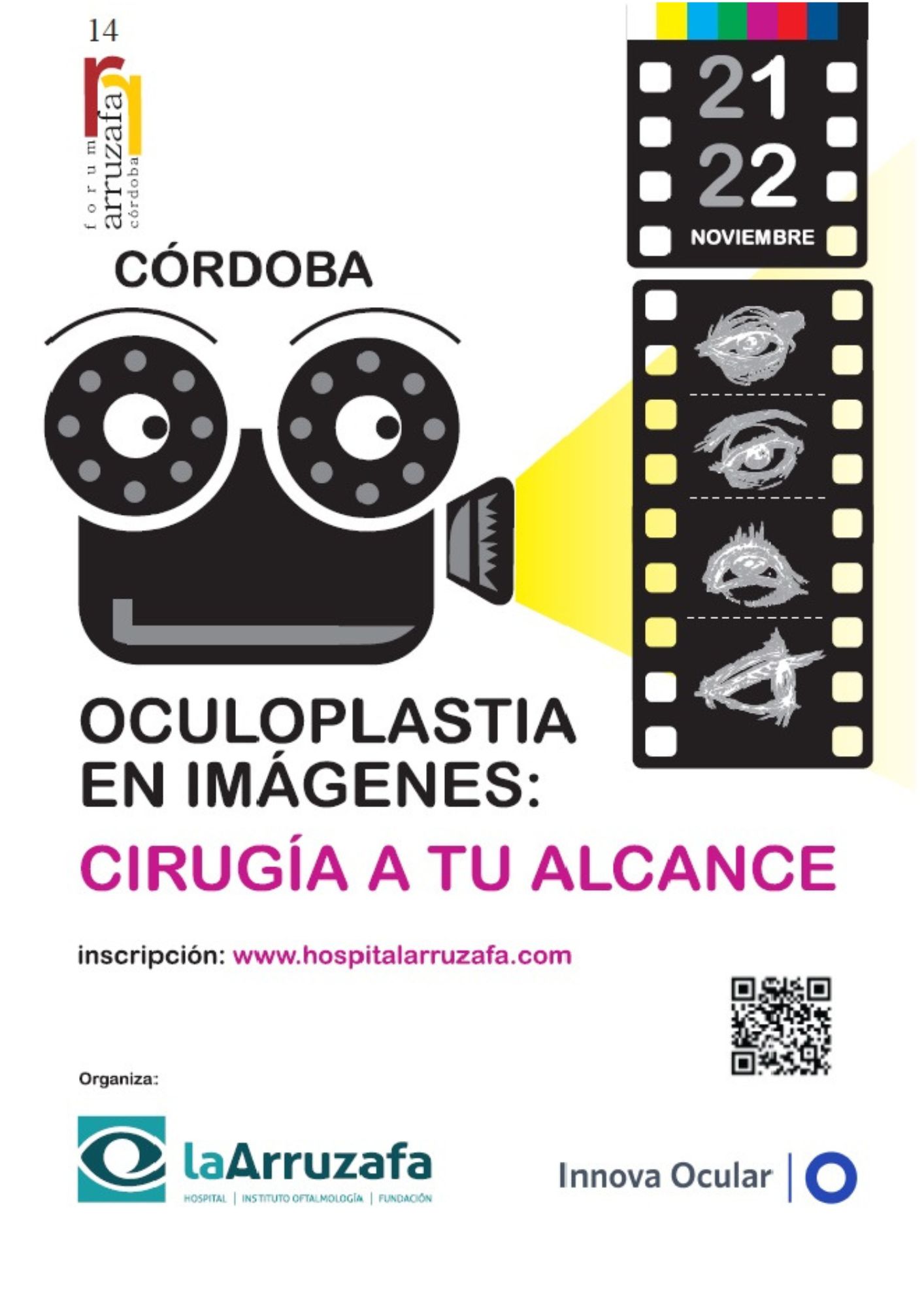 El Forum Arruzafa 2014, celebrado durante los días 21 y 22 de noviembre, con el tema ‘Oculoplastia en imágenes: cirugía a tu alcance’, ha tenido como objetivo principal acercar, de una manera práctica, la oculoplastia, subespecialidad oftalmológica que se ocupa de las estructuras faciales perioculares (párpados, vía lagrimal y órbita), a través de las diferentes técnicas quirúrgicas, de forma que se ha expuesto una visión clara y eficaz para tratar a los pacientes en el ejercicio diario de esta profesión médica.